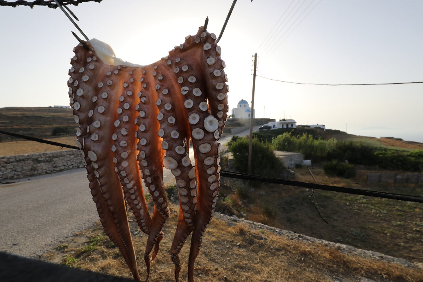Our second foray had more luck. We drove around the island to a secluded bay and set off. I was swimming right behind Mladin when he caught the first octopus, but he was so quick that I barely noticed it happen. There was a movement behind a rock, his hand shot out and I caught a momentary glimpse of a creature being roughly shoved into a net bag. It happened twice more.
